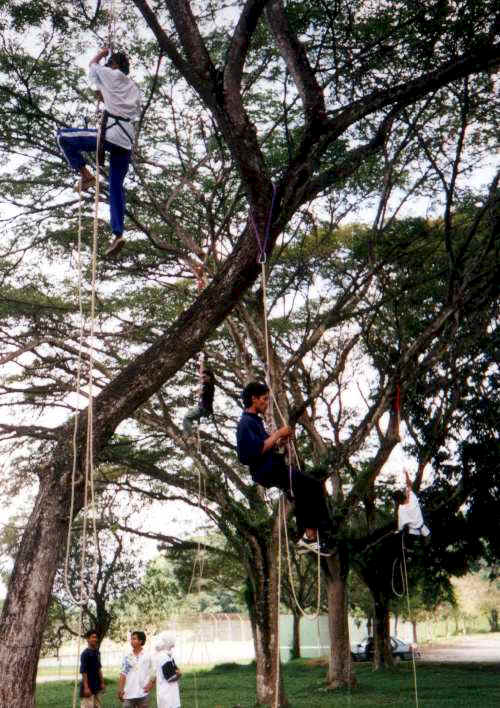 Almost anyone can climb trees with only a few basic knots. Unusual strength is not necessary. All you need is loose clothing, light shoes and some extra energy. This activity is suited for kids 10 years old to kids over 50. Make sure you bring a camera for pictures your friends will want to see.
